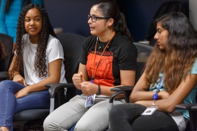 我们的暑期浸入式课程让女孩们具体了解在现实世界中应用计算机科学技能的意义。重要的是,他们要认识女性工程师,看看人们整天都在做什么,以揭开计算机科学专业人士的神秘面纱。在正式的学习空间中,让学生理解他们所学内容的相关性是一个问题。