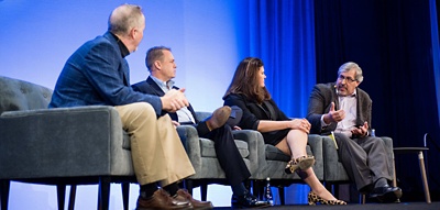 英国石油公司人力资源服务副总裁Richard Bye;Jeanette Olson, Target公司系统技术服务副总裁;Ameriprise financial负责金融应用的财务副总裁John Mead与Cloud Wars Media Network的创始人Bob Evans坐在一起,分享了他们在数字化转型之旅中的最佳实践和经验。