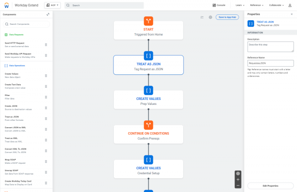 With new Workday Orchestrate, now included with a Workday Extend subscription, app developers have the ability to orchestrate finance and people processes across Workday and third-party systems. These orchestrations are built visually using Orchestration Builder—a drag-and-drop user interface that provides guided, simplified low-code developer experiences to define logic, map data, and perform transformations.